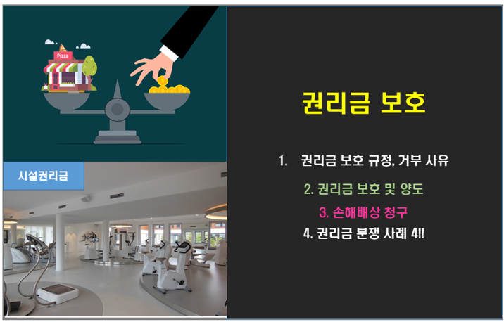 상가에서 권리금은 매우 중요한 요소로 기존 임차인이 영업을 통해 쌓아 온 가치(영업시설, 비품, 거래처, 신용, 영업 노하우 등) 유형·무형의 재산적 가치를 새로운 임차인에게 양도하거나 이용하는 과정에서 대가로 받는 금전 즉, 권리금이 발생하게 됩니다.